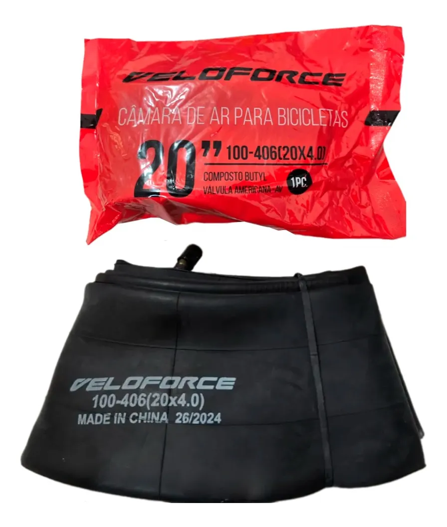 A Câmara Veloforce 20×4.00 AV 40mm é perfeita para quem busca durabilidade, segurança e performance em bikes com pneu largo. Feita com borracha butílica, possui alta elasticidade, emenda invisível e ótima resistência ao impacto. Ideal para bicicletas aro 20 modelo fat bike. Compatível com remendos a quente ou frio. Características: Marca: Veloforce Modelo: 20 x 4.00 Material: Borracha butílica Válvula: Grossa (AV) – 40 mm Emenda: Invisível Compatível com remendos a quente/frio Conteúdo da Embalagem: 1 Câmara de ar Veloforce 20×4.00 AV 40mm